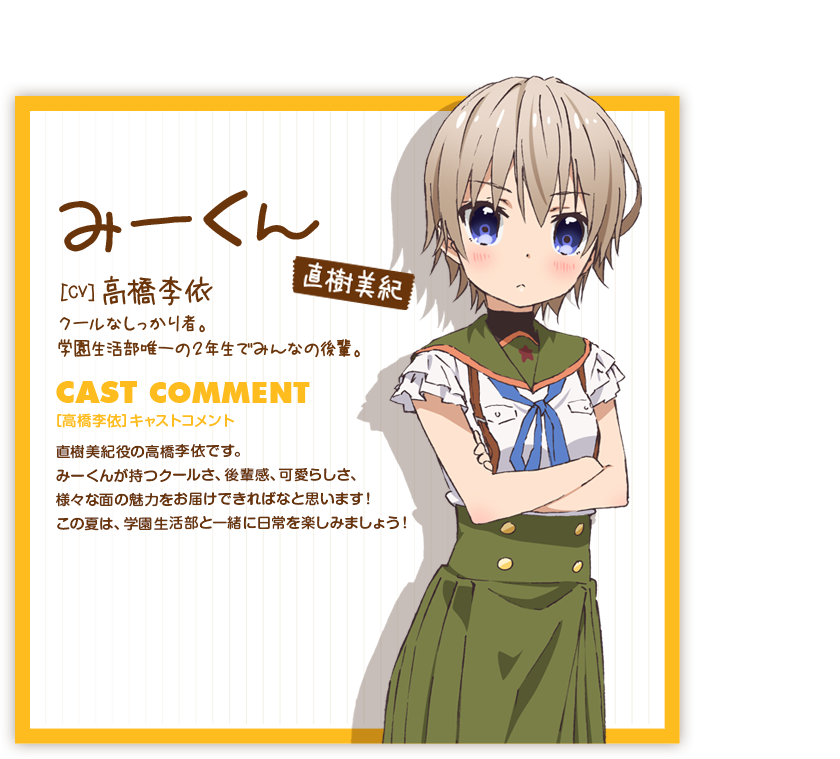 みんなのまとめ役。学園生活部部長の高校3年生。愛称は「りーさん」。