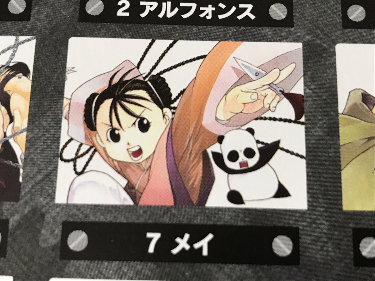 物語の中盤で異国の民として登場するのがこの「メイ・チャン」で異国の皇女と言う高い地位にいるが自国の命運を握り遠く「アメストリス国」まで来ている。常に小柄なパンダの「シャオメイ」と一緒に行動している。黒くて長い髪を団子にして更に6本の細い三つ編みで束ねる手の込んだ髪型をしている。本人も小柄で10歳代前半と思われる。また拳法の達人で強さを誇りにするより生き延びる術として心得ている所があり、長旅もこの能力によって救われて来たであろうことは想像に難くない。この異国の意外な登場人物がどのように物語に関わるのか興味深いが、まさに物語の最後の局面で重要な役割を果たす大切なキャラであり、決して出番の多いキャラではないが、忘れずに暖かく見守って欲しいキャラと言える。そして物語が結末を迎えた時、この「メイ・チャン」がどんな状態になっているかは、その目で確認してもらいたい。私はちょっと感動して目頭が熱くなるのを覚えた。