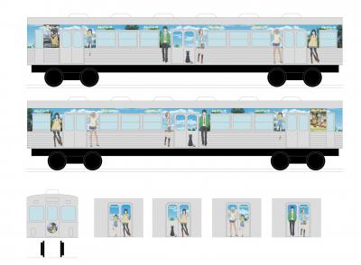 外装だけでなく、内部まで『ふらいんぐうぃっち』にこだわった上、車内では真琴が沿線の紹介を交えながらアナウンスしている。