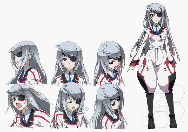 本作のヒロインの一人で、専用IS 「シュヴァルツェア・レーゲン」を駆る女の子である。過去のとある実験が原因で左眼が金色に変化、その後変化した左眼を隠すために眼帯をしている。登場初期は主人公「織斑一夏」を毛嫌いしていたが、第8話にて「織斑一夏」に助けられてから一転「お、お前は私の嫁にする。決定事項だ。異論は認めん!」と公言し、「織斑一夏」を手に入れようと過激な方法を取るようになる。そんな彼女の求愛行動は必見なのでお見逃しなく!!