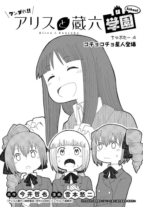 毎週日曜放送される『アリスと蔵六』のスピンオフコミック『ワンダれ!!アリスと蔵六学園』第4話が公式サイトより更新された。原作「今井哲也」マンガ「雪本愁二」によるドタバタ学園コメディ!! 毎週日曜17時より更新! また、公式TwitterよりTwitterアイコンも毎週日曜日に配布される。アニメ放送される日曜日は公式サイト、公式Twitterを要チェック!!