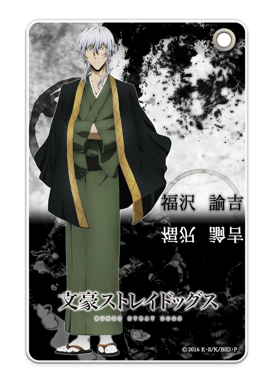 社員の多くを異能力者で構成された武装探偵社の社長であり、個性的な社員達を統括する人物。社員の「中島敦」が敵に連れ去られた際は、会社業務より社員救助を優先させたり、敵である「ポートマフィア」の暗殺者だった「泉鏡花」の身柄を預かったりと情の深い人物に思える。振る舞いからはしぶい大人の魅力が溢れている。他のキャラクター達と比較すると登場回数は少ないが、今後の活躍に期待したい和装男子だ。