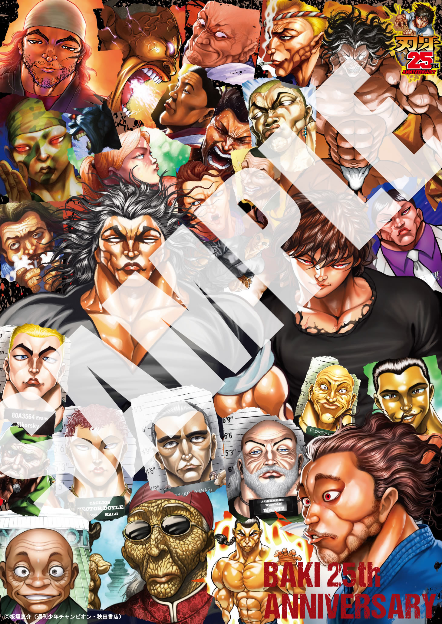 100枚を超えるファン垂涎のシーンの複製原画展示や会場限定オリジナルグッズの販売、等身大刃牙キャラクターたちのパネル展示したイベント。4シリーズ25年に渡る歴史を感じることができる。