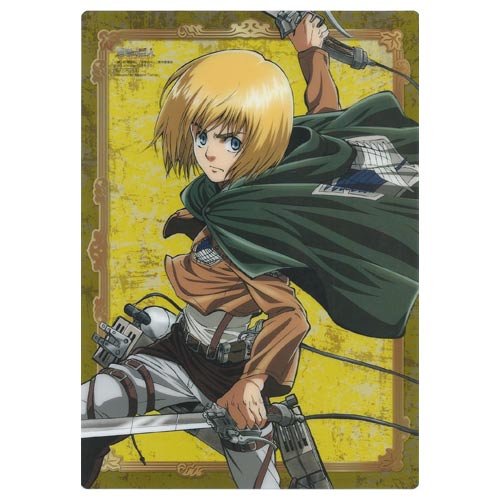 主人公「エレン・イェーガー」の幼馴染で主人公とは一番長い付き合いをしている。更に主人公と同じ最も厳しく死亡率の高い「調査兵団」に属し、過酷な人生を歩んでいる。金髪のボブヘアと小柄で細身の体型と融和な物腰と会話から中性的なイメージがあり、時には同じ幼馴染の「ミカサ・アッカーマン」よりも女性らしさを感じさせる時もある。巨人に対する戦闘力は決して高くないが、頭脳明晰で高い知識と状況判断の良さから多くの戦場から生き延びて来ている。実際「エレン」を救う為に作戦を練り、その多くが成功を果たしている点から参謀や策士としてもっと評価されて良い存在とも言える。自己主張を抑えつつ、周囲の状況や場の空気を的確に理解・判断し、的確に仲間に伝達する能力は組織の中の一員として優秀な人材であり、この点だけでも男女の区別なく「アルミン」一個人として際立った存在とも言える。アニメではナレーションも担当し、この作品全体を支えている裏の主役と呼んでも良いかもしれない。