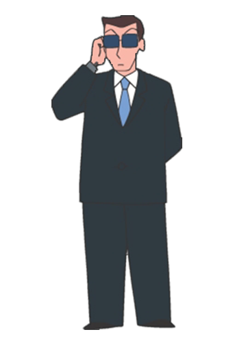 「野原しんのすけ」の友達「酢乙女あい」のボディーガード。黒のスーツにサングラスが特徴的で、サングラスの下を見た者はいない。「黒磯」のサングラスを外そうとするストーリーもあったが、外れた時の対応の素早さで結局誰も見ることができなかった。しかし、「黒磯」と相思相愛の「上尾先生」は一度外れたところを見たシーンがあったが、その目は描写されていなかったため、目の下は視聴者は見られなかった。また、硬派すぎるせいなのか恋愛に関しては奥手で、なかなか交際までには発展しない。ボディーガードとして「あい」のすぐ傍の茂みや木の上などに潜んでおり、「あい」の危険を察知してはいきなり現れピンチを救う優秀なボディーガードである。しかし時折、屋敷内でゴルフなどの素振りをしているときに「旦那様」の大事なものを壊し、その場面を「あい」に盗撮され、弱みを握られることもしばしば。油断があるということから完璧なボディーガードではないかもしれない。