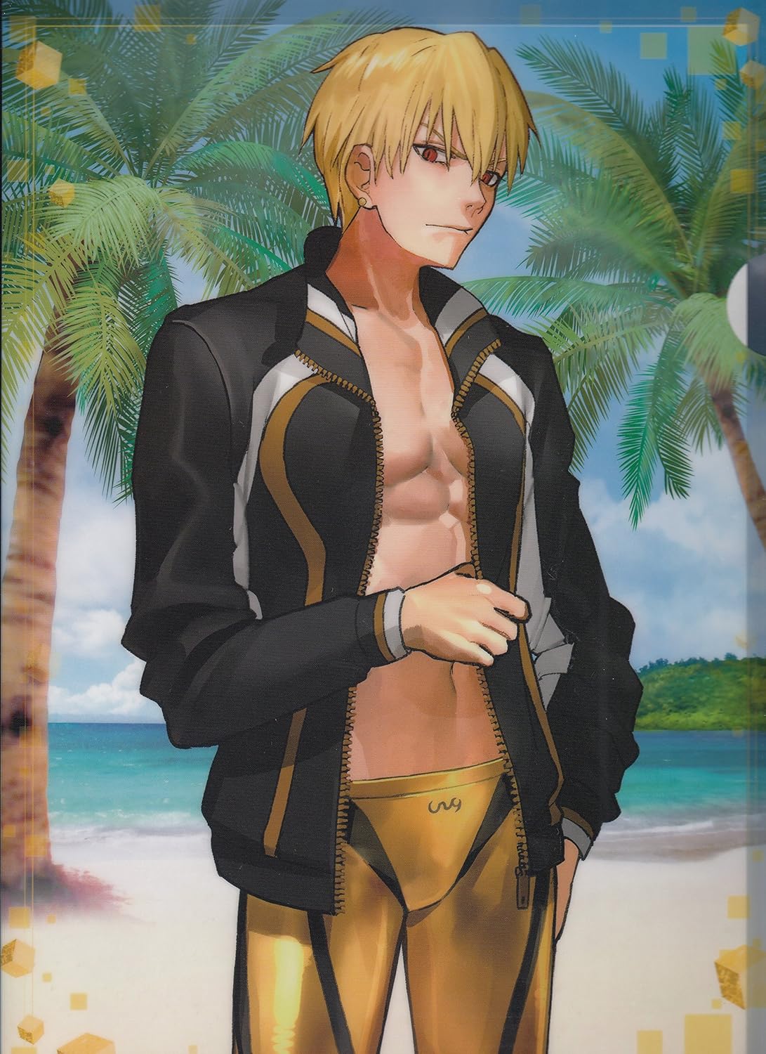 この作品に登場する聖杯戦争参戦者に召喚される英霊で、メソポタミア神話に登場する「ギルガメッシュ王」。クラスは「アーチャー」で、あらゆる武器・宝具を所有し圧倒的な強さを持つ。基本的にオールバックの髪を掻き上げた状態であるが、時々、前髪を下ろしている事もあり、風貌が大きく変わる。金色の甲冑姿が雄々しく映えるが、身体はいわゆる細マッチョでたくましい。その性格は王様気質で、常に上から目線で相手を下に見ている。強さと見た目と性格であらゆるものの頂点に立っていると考えていて、それを確実に実践している完璧な英霊。あまり関わりたくないが、敵にはしたくない。3回しか使えない令呪を1000回ぐらい使えることが可能なら、英霊召喚してマスターになってみたいと思う人は多いことだろう。