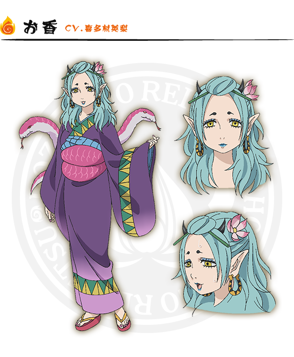 地獄を舞台に、そこに暮らす人物達の日常を描いたアニメ『鬼灯の冷徹』。本作に登場する「お香」は、淫楽に溺れた死者が落とされるという衆合地獄において主任補佐を務める「獄卒」。水色の長い髪に、蓮の花を模した髪飾りを付けている妖艶な美女だ。淑やかな物腰をした美しい鬼であり、少々天然な面はあるものの仕事に関しては非常に優秀。また同性から嫌われない特異な性格をしており、彼女が上に立っているおかげで女性が大部分を占める衆合地獄も上手くまとまっている。