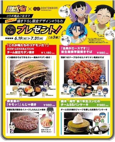 「道とん堀」×『弱虫ペダルNEW GENERATION』コラボキャンペーン! コラボメニューは4品をラインナップ。限定コラボメニュー注文で、”描き下ろしデザインのうちわ”をもれなくプレゼント。