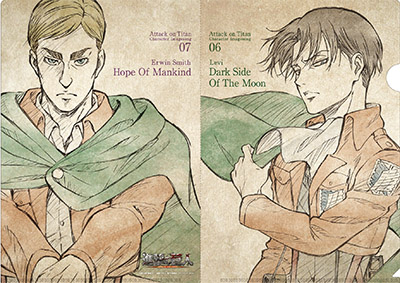6月21日発売の『進撃の巨人』キャラクターイメージソングシリーズVol.6「Dark Side Of The Moon」、Vol.7「Hope Of Mankind」のジャケットイラストが公式サイトより公開された。今回は「リヴァイ」と「エルヴィン・スミス」のキャラソンとなっている。早期購入特典にはミニクリアファイルがプレゼント!!