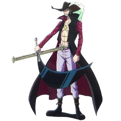 「王下七武海」の一人であり、作中では世界最強の剣士。異名は「鷹の目のミホーク」。曲者ぞろいの「王下七武海」のメンバーの中では比較的紳士的な性格だが、大津波を一刀両断したり「ルフィ」の全力の攻撃を軽くあしらうなど剣士の枠にとどまらずまさに作中最強キャラの一角。見るからに重量ありそうな大剣を涼しい顔で扱い、洒落た帽子を被りこなす。