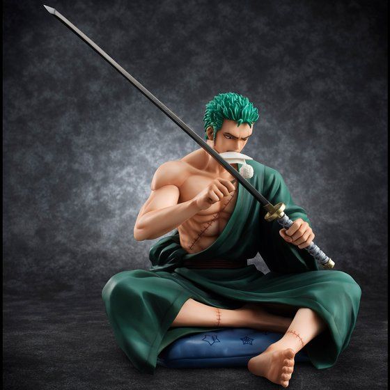 ワンピースの人気キャラクター「ロロノア・ゾロ」、座布団に座って愛刀・和道一文字の手入れをする姿が、フィギュアになって「プレミアムバンダイ」に登場!!