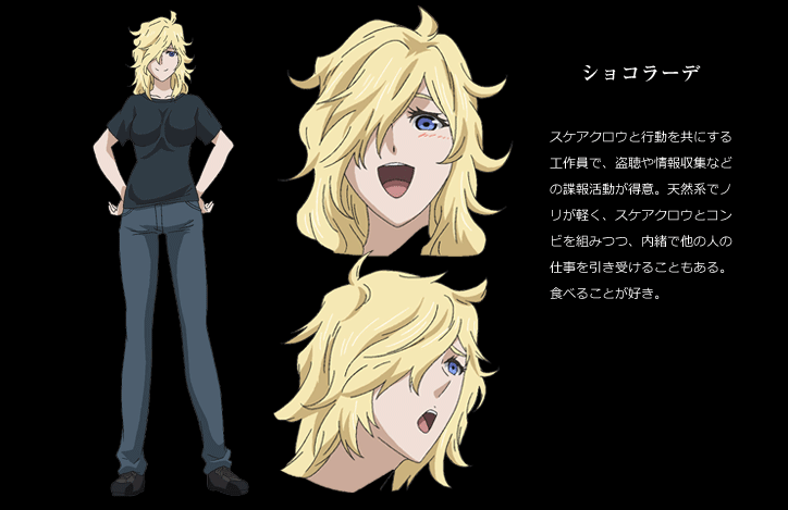 武器や兵器に関する全てを憎んでいた元少年兵「ヨナ」。戦争によって両親を失った。そして生きるために少年兵になったが仲間を兵器によって失った。子供でありながら高い戦闘力と武器の知識を持っている「ヨナ」。己の持つ「武器を憎む気持ち」と「銃器の扱いに精通している」という矛盾を抱えていた彼は、皮肉にも武器商人である「ココ・ヘクマティアル」の私兵部隊に加わることとなった。「ココ」は世界的な海運王を父に持ち、世界の紛争地域でビジネスを展開していた。そんな彼女と、非常に個性的でありながらも非常に優秀な8人の私兵たちと共に世界各地を旅することになった「ヨナ」。武器商人としてのビジネス、そして「ココ」を狙う殺し屋の排除を重ねる私兵部隊のメンバーたち。その裏で「ココ」はある計画を推し進めていた……。「ココ」たちを付け狙うCIA工作員「スケアクロウ」と行動を共にしている人物が「ショコラーデ」である。彼女は盗聴、情報収集などの諜報活動を得意とする、天然系でノリの軽い女性。「スケアクロウ」に内緒で他の人からの依頼を引き受けたりすることも。そんな「ショコラーデ」は大食いな白人女性。タレ目で金髪のくせ毛があちこちにはねている。「ヨナ」たちの旅はどこへ向かうのか。「世界平和のために武器を売り歩く」という「ココ」の計画は一体……!?