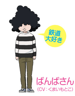 物語の舞台は男子禁制のアパート「天水館」。ここに暮らす人々は全員実家からの仕送りで暮らすニートの筋金入のヲタ女子ばかり。クラゲをこよなく愛する主人公の「倉下月海」をはじめ、着物や人形などの和モノマ二ア「千恵子」、三国志マ二ア「まやや」、枯れ専の「ジジ様」、そして鉄ヲタの「ばんばさん」。彼女たちは自分の好きなものにどっぷりと浸り、独自の青春を謳歌している幸せな女子たち。自らを「尼〜ず」と呼び、「オシャレ人間は敵!!」「人生に男は必要としない」事を「天水館」に住む資格、かつモットーとし、マニアックながらもまったり楽しくぬるま湯生活に浸かりながら暮らしていた。ある日「月海」はとても美しい1人の女性と出会う。しかし、その美女の正体は女装男子だったのだ……。彼(彼女!?)の出現により、それまでの生活が少しずつ変化を始めるのだった。この「尼?ず」の1人、「ばんばさん」は鉄道マ二ア。「廃線跡を歩く」という番組を見た事から鉄道趣味に目覚め、都電荒川線のレトロ車両を見るとつい乗ってしまい、鉄道模型収集も行っている。やる気はあまりないが、鉄道や食べ物のこととなるとやや興奮する。小さめの身長に太いボーダーのトレーナー。そして天然パーマでアフロヘアーのようなインパクトの強いヘアスタイルが特徴的である。個性強めな彼女たちの生活がどう変化して行くかは、ぜひ本編でご確認願いたい。