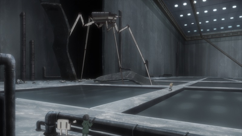 暗闇の中から現れたのは、長い足を持つ巨大なロボットで、「チト」と「ユーリ」の眼前を通過し、また暗闇の中へと消えていったーー。