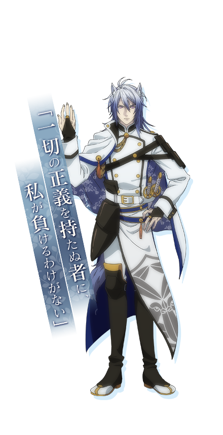 長い銀髪から生えた獣耳が特徴の「上杉謙信」。幼い時からお寺で修行を行ってきたため、義理堅い性格の持ち主だ。非常にクールで落ち着いた雰囲気だが、一度機嫌を損ねると面倒くさい一面も……。原作はスマートフォン向け乙女ゲームで、2017年10月より放送が開始されたばかりのアニメ作品である。