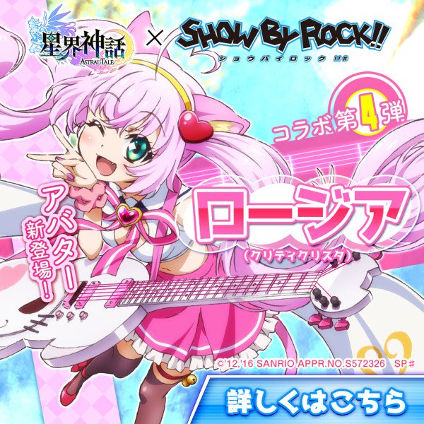 『星界神話 -ASTRAL TALE-』とTVアニメ『SHOW BY ROCK!!』コラボ第4弾が10月11日からスタートした。ラボレーションアバター第4弾となる「ロージア(クリティクリスタ)」が登場。ゲーム内のGモールに「ロージア衣装BOX」と「ロージアヘアーBOX」がラインナップしている。
