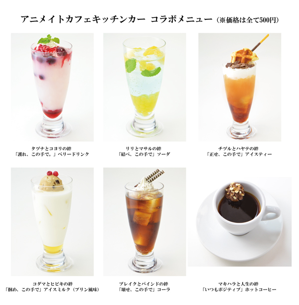 コラボメニューとして、ミックスベリー味のドリンクにホイップクリーム、ベリーソース、ミントの葉を添え、コヨリの好物であるパフェをイメージした「タヅナとコヨリの絆「護れ、この手で。」ベリードリンク」や、衣装の色をラムネシロップやオレンジ果肉で表現した「リリとマサルの絆「結べ、この手で」ソーダ」など、登場キャラクターをモチーフとしたコラボドリンクを全部で6品提供される。