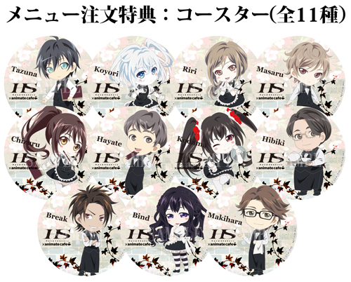 また、これらのコラボドリンクを注文すると、描き下ろしイラストを使用したコースターを全11種の中からランダムで1枚特典として受け取れる。さらにアニメイトカフェ限定グッズとして「トレーディングスタンドキーホルダー」「トレーディング缶バッジ」などの買い物も楽しむことができる。