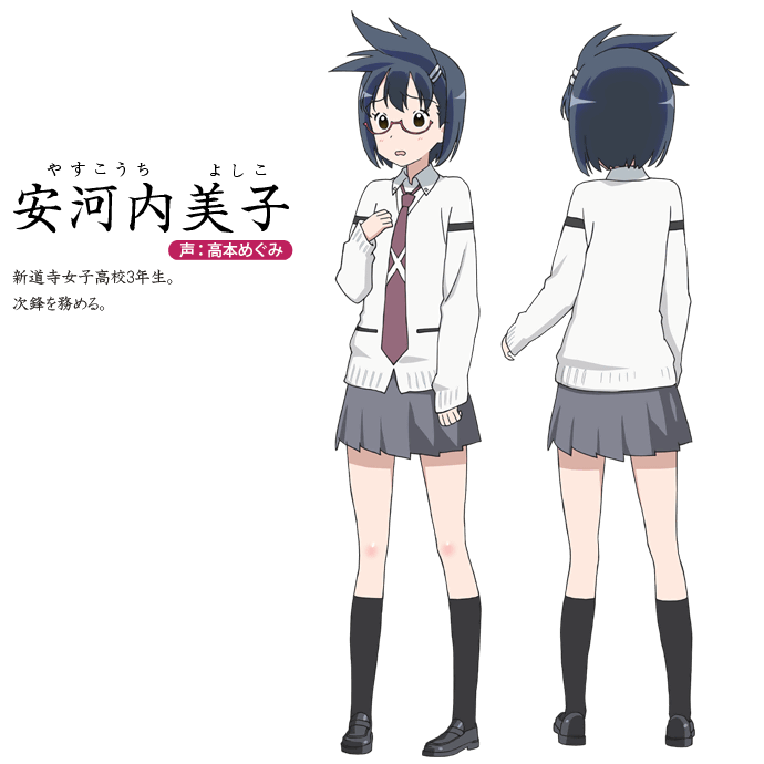 とさかのように跳ねた前髪が特徴的な眼鏡の少女。常に困ったような表情を浮かべている。