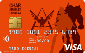「シャア専用VISAカード」は、2種類のデザインから選ぶことができる。TypeAは「シャア」本人の姿が、TypeBには「シャア」本人とモビルスーツのシルエットがプリントされている。