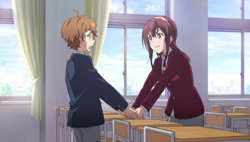 「越山識」は、本の虫で引っ込み思案な性格。文蔵高校に入学して、お弁当も図書館で食べるほど。
