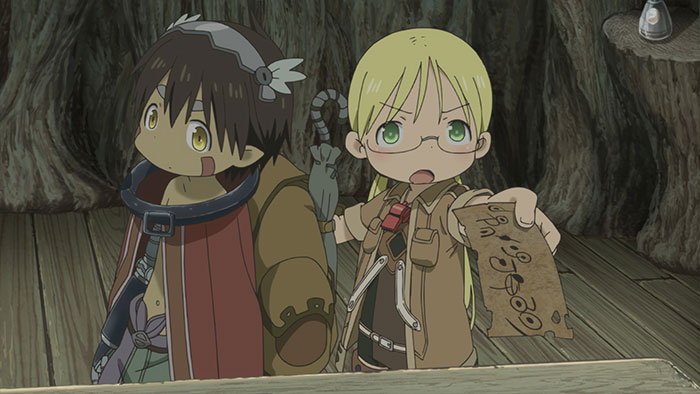 夜に「リコ」の部屋に集まった子供たちは、「レグ」が巨大な大穴「アビス」の底から来たのではないかと推測していた。「シギー」は、発掘された遺物が載っている図鑑「遺物録」に「レグ」のような遺物は載っておらず、「アビス」史上最も価値のある遺物の1つ「奈落の至宝(オーバード)」ではないかという。その事から子供たちは、「レグ」が大人たちに見つかってしまうと「取り上げられて分解されてしまう」と恐れ、ある作戦を実行するのだった……。