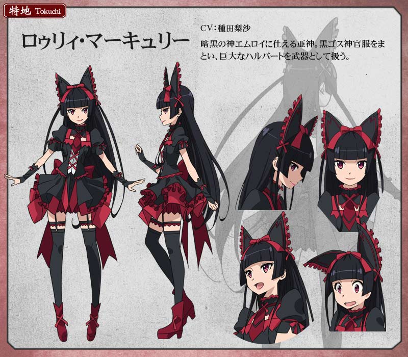 8月のある日、東京の銀座に突然異世界への「門(ゲート)」が出現した。「門」から次々と出現するモンスターを撃退した陸上自衛隊は、「門」の向こうにある「特地」に進出。そこの住民たちとの接触を試みる。モンスターとの闘い、そして現地住民たちとの交流を描いたこの作品に出て来るゴスロリ少女が「ロゥリィ・マーキュリー」である。見た目は12歳程度の可愛らしい少女であるが、不老不死のため実年齢はなんと961歳!!死と断罪の神「エムロイ」に仕える亜神であり、人の肉体を持ったまま神としての力を得たのだ。戦闘能力は非常に高く、人間では考えられないほどの身軽さとスピード、パワーを持っており、大人数人がかりで持ち上げる巨大武器「ハルバード」を振り回し戦うほど。そんな「ロゥリィ」は腰の丈ほどの長い黒髪に赤い瞳、ゴスロリに似た黒い神官服を身につけている。見た目だけなら本当に可愛らしいゴスロリ少女なのだが……。人は見かけによらないものだ。