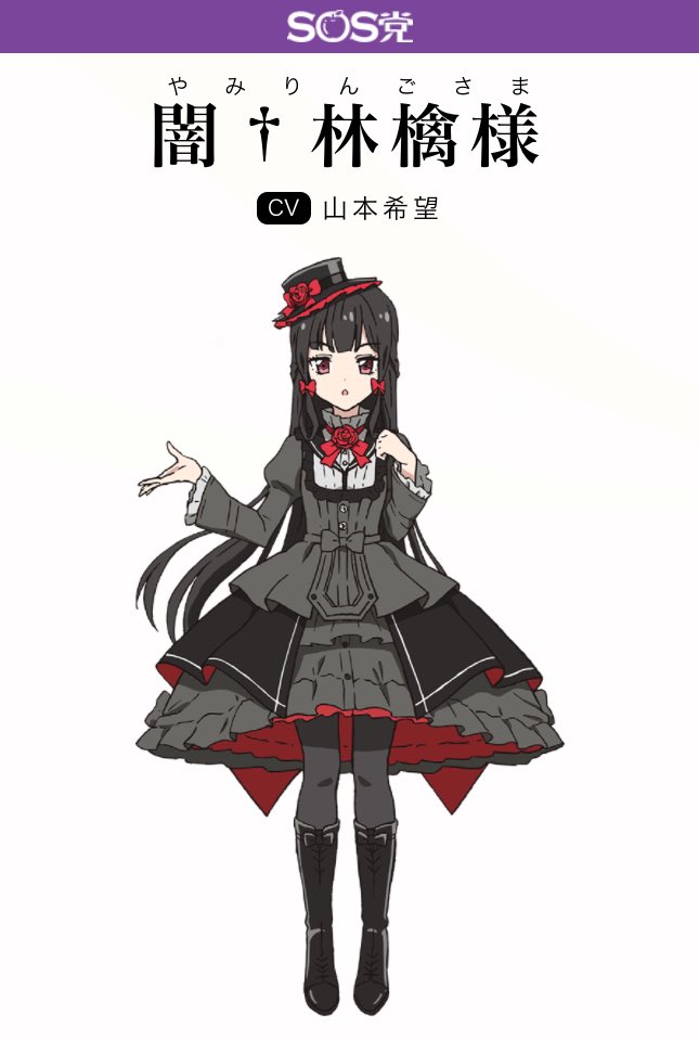 「SOS党」の党首で、マニフェストは「迷える子羊たちに闇の福音を!」。ヴィジュアル系の楽曲とパフォーマンスを得意とし、中二病を発症した「ゴスロリ議員」で、りんご農家の生まれであることから、農業が抱える問題に取り組んでいる少女。