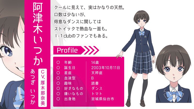 口数は少なく、クールな見た目だがかなりの天然。ダンスは得意でストイックな一面も。「I-1club」のファンでもある。