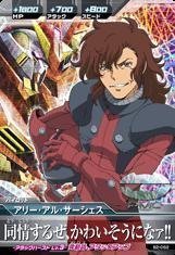 三度の飯より戦争が好きな傭兵。モビルスーツの性能差が圧倒的に高いガンダムエクシアに対しても、サーシャス専用イナクトで追い詰めるに至るまでの実力を持つ。イノベイターである「リボーンズ」にさえ「人間の枠を超えている」と評されている。戦争の中に身を置いている時は「テメェだって同類じゃねぇか!紛争根絶を渇げるテロリストさんよぉォォ!!」「そうよ!そのまさかよ!」「ちょいさー!」と言った風にテンションが高い。戦争屋としての「ひろし」がとてもかっこよく思える作品だ。