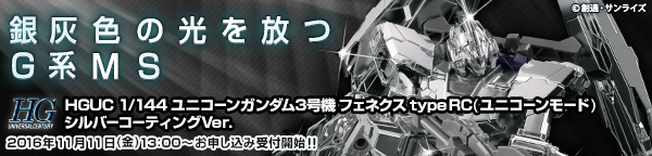 ガンメタ調のシルバーメッキ加工により、光沢と重厚感を再現された「ユニコーンガンダム3号機 フェネクス」がプレミアムバンダイにて発売された。 さらに「ガンプラ EXPOワールドツアージャパン 2016」ではゴールドVer.が登場!?