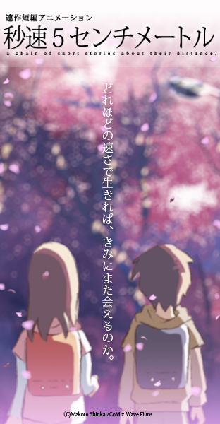 特別な想いで繋がっていた「遠野貴樹」と「篠原明里」の2人は小学校を卒業するが、「明里」は東京から栃木へ引越しをすることに。それから半年が経ち、「明里」からの手紙がきっかけで2人は文通を始める。しかし今度は「貴樹」の鹿児島への転校が決定し、その絶望的な距離に危機を感じた「貴樹」は「明里」に会いに行くのだった。幼い頃の淡い恋心を胸に、そのまま大人になってしまった「貴樹」の一途な気持ちと、その幼さゆえにすれ違ってしまった2人の関係性に切なさを感じるはず。