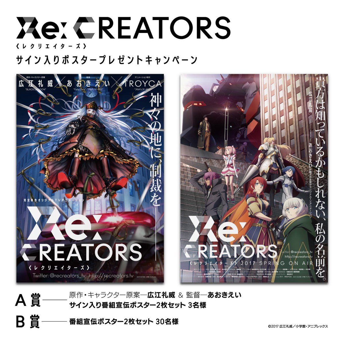 1.TVアニメ『Re:CREATORS(レクリエイターズ)』公式Twitter(https://twitter.com/recreators_tv)をフォロー。