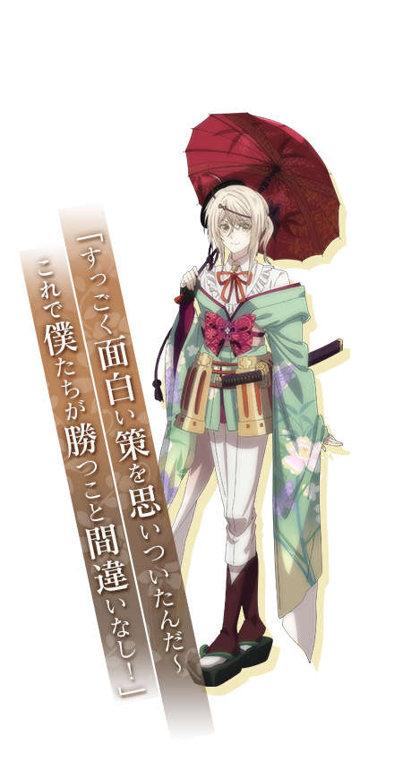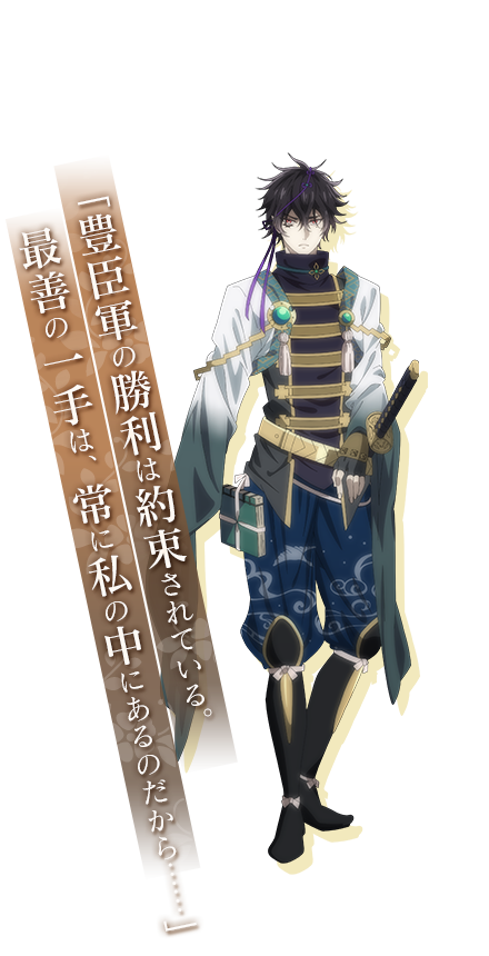 少々陰湿でミステリアスな雰囲気をまとう、腹黒で底知れぬ恐ろしさを持つ男。「竹中半兵衛」と並ぶ、「豊臣軍」二大軍師の1人。
