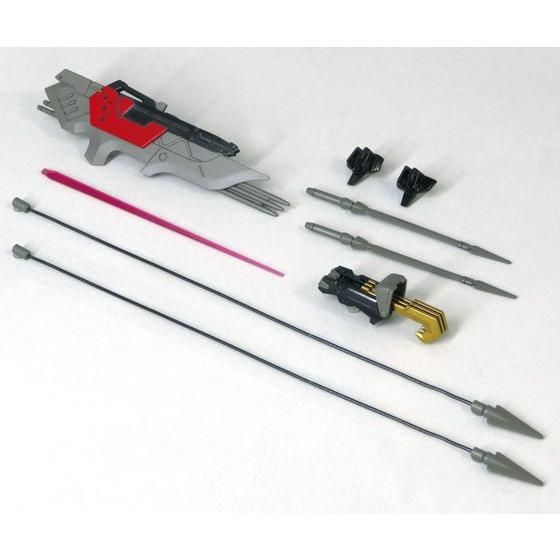 ‘トリケロス改’を右腕に装着可能。シールド部分には細かなディテールを施し、メカ感のあるシャープな印象の仕上がりとなった。先端部にはクリア成形のビーム刃が取り付け可能。‘マガノシラホコ’は、付属のリード線で射出シーンを再現することができる。