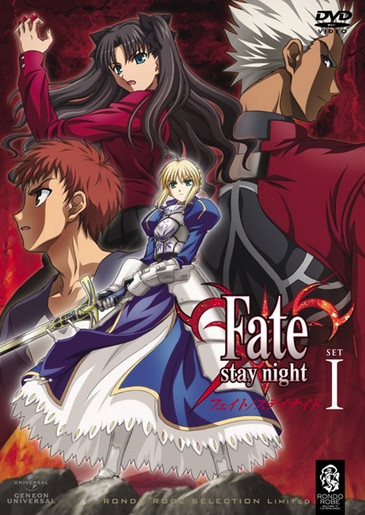 2006年1月から6月まで放送された作品。どのような願いも叶えるとされる「聖杯」を巡って繰り広げられる、魔術師とその使い魔「サーヴァント」によるバトルロイヤル「聖杯戦争」。ある日、「衛宮士郎」はとあるきっかけにより「聖杯戦争」に巻き込まれ、冬木市で行われる「第五次聖杯戦争」の7人目のマスターとして参加することになる……。原作ゲームの「セイバールート」が基幹の物語。原作は、同人サークル「TYPE-MOON」の商業デビュー作品であるビジュアルノベルゲーム『Fate/stay night』。本作は「Fateシリーズ」初のアニメ化作品で、ルートの違う物語がテレビアニメ、または劇場版アニメとして制作されたり、他のシリースや外伝がコミカライズ、ノベライズ、スマートフォンアプリ化されたりとメディア展開が多岐にわたる。2017年現在も根強い人気がある作品だ。