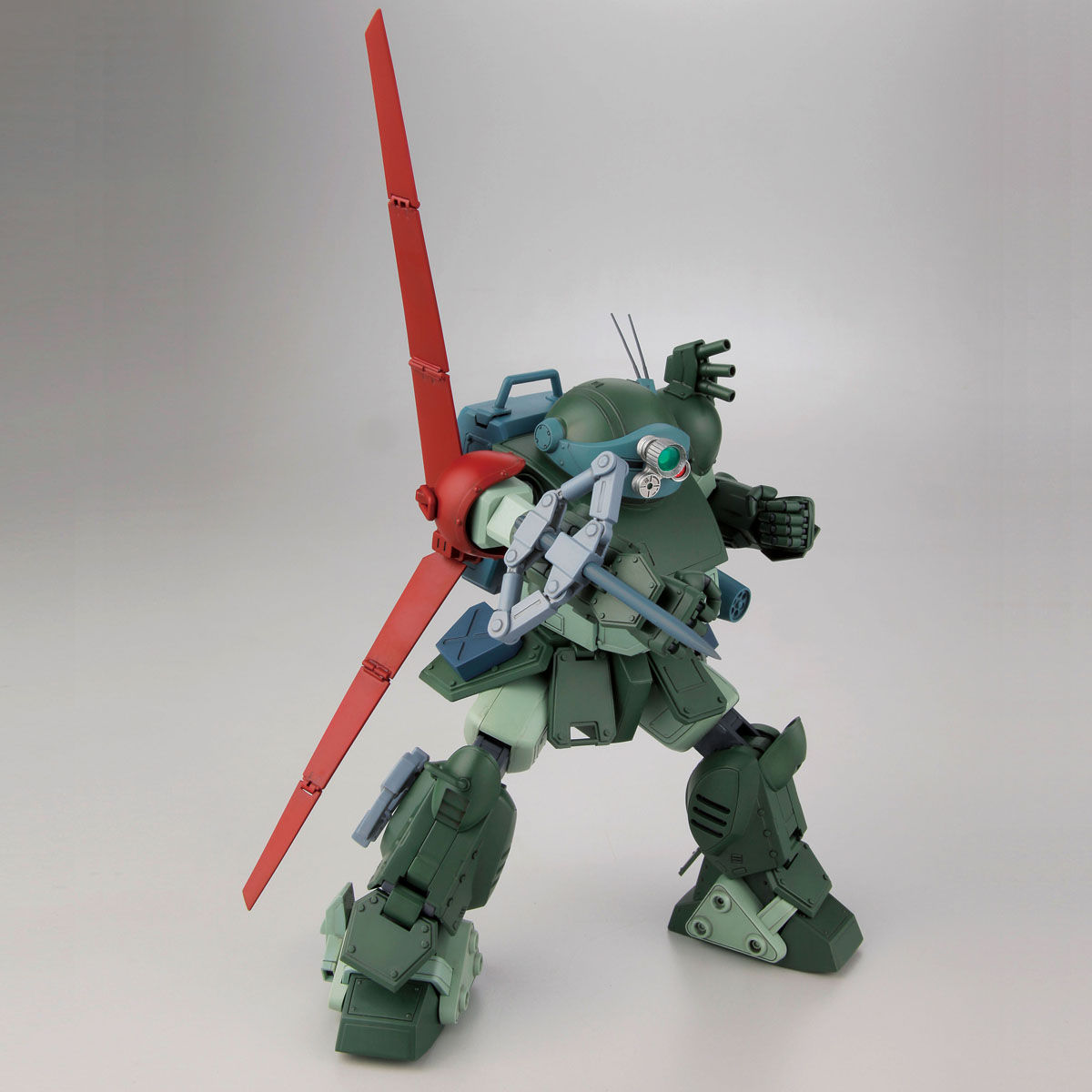 「リーマン機」の特徴である赤い大型ブレードアンテナ、電磁式パイルバンカーを新規造形で再現。ブレードアンテナは折りたたみギミックが搭載され、伸縮状態をパーツ差し替え無しで再現。電磁式パイルバンカーは、射出時のポージングも再現でき、杭は腕部から取り外して脚部に装着も可能。