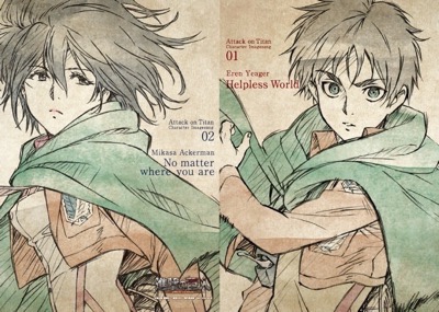 『進撃の巨人』Season1のBlu-ray&DVD BOXが3月15日より発売される。特典には65Pに及ぶ未掲載のマンガ『進撃の巨人』0巻や、各2時間分収録されたビジュアルノベルDiscが2枚と豪華特典付き! 同日にキャラクターイメージソングVol.01「Helpless World」、Vol.02「No matter where you are」も発売されるため、共に確認しておこう。