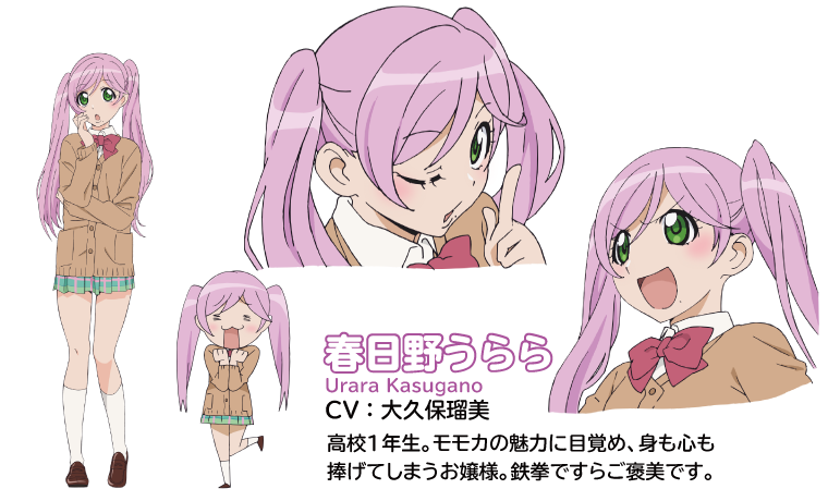 ツインテールの美少女でドM。1話にて主人公「園川モモカ」から嫌がらせの報復を受けてからMに開花する。その後は、自らを殴り飛ばした拳に頬ずりしたり、納豆巻きでびんたを懇願する等のMっぷりが目立つようになる。見かけによらず超人的な握力をしており、戦闘能力も相当高いため、見た目とのギャップに驚愕である。