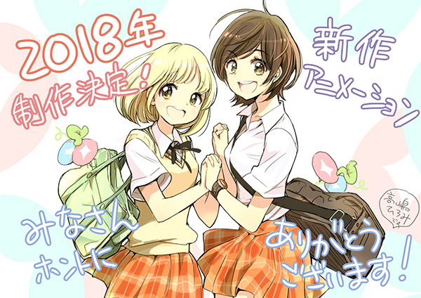 新書館「ひらり、コミックス」より刊行中のマンガを原作とする『あさがおと加瀬さん。』は、緑化委員の内気な女の子「山田」が“あさがお”をきっかけに、陸上部のエースで美人な女の子「加瀬さん」と距離を縮めていく様子を描いた作品。先日公開されたアニメーションクリップでは『STEINS;GATE』の「佐藤卓哉」が監督・絵コンテ・演出を務め、『フレームアームズ・ガール』の「ZEXCS」がアニメーション制作を担当。映像を彩るイメージソングには「奥華子」の「君の笑顔(album ver.)」が用いられた。2018年アニメ化を記念して原作「高嶋ひろみ」による描き下ろし記念イラストをお披露目&イベント情報も公開されている。