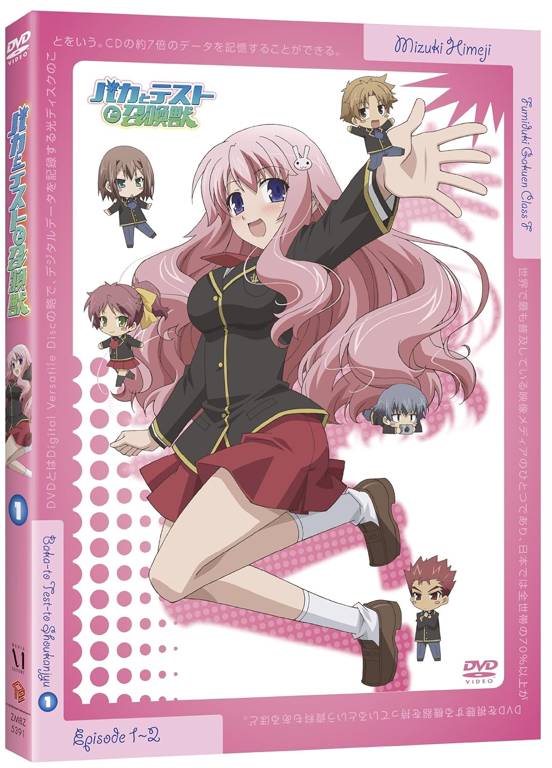 「井上堅二」作のライトノベルが原作。学力試験の点数で競うという今までにないテーマを扱った「バカと美少女達による学園エクスプロージョンラブコメ」。「文月学園高等部」には科学とオカルトと偶然によって開発された「試験召喚システム」という制度があった。試験結果によってクラス分けがされるこの学園で、自信満々にテストに挑んだ主人公「吉井明久」が振り分けられたクラスは、学園最底辺「Fクラス」だった。机はちゃぶ台、劣悪過ぎる環境に嘆く「明久」、そんな劣悪環境での初ホームルーム中に入ってきたのは学年トップクラスの学力を持つ「姫路瑞希」だった。元々体の弱かった「瑞希」は、振り分け試験の際に途中退場してしまい、それによって失格扱いになり「Fクラス」に振り分けられてしまったのだった。密かに「瑞希」に想いを寄せる「明久」、彼女をこの劣悪環境から救う為、悪友でクラス代表でもあった「坂本雄二」を焚きつけて、「試験召喚戦争」を勃発させる事になる。召喚システムを使用し、学園最高クラスである「Aクラス」に戦いを挑み、勝利し最高の設備を手に入れようと無謀な戦いを挑む。様々な手を駆使し「Aクラス」に挑む「明久」達、しかし代表による日本史のペーパーテストで敗北してしまい、設備がちゃぶ台からみかん箱へと降格してしまうのだった。