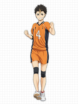 烏野高校排球部(ハイキュー=バレーボール)に「小さな巨人」と称される1人のエーススパイカーがいた。主人公の「日向翔陽」はその選手の背中に憧れバレーを始め、同じ高校のバレーボール部に入部し成長していく姿を描く。バレー部の守備の要「リベロ」である「西谷夕」は作品一小柄な体格ながらその存在感は、大きく県内で1、2を争うほどの能力を持ちどんな球でも拾いまくり「烏野の守護神」と呼ばれる。褒められるとすぐ調子に乗り、非常ににぎやかな存在で「ゲリラ豪雨」と称される程。マネージャーである「清水潔子」にアプローチしては毎回無視されるが、全くめげない強い精神力の持ち主でもある。そんな彼が愛用しているTシャツは「四字熟語」が書かれており、「一騎当千」「一刀両断」「百戦錬磨」「一球入魂」などなど、そのラインナップはかなり豊富らしい。小さな「烏丸の守護神」が背中に背負う大きな信頼、それにふさわしい文字が並んでいる。