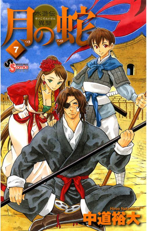 中国山東省梁山県の南東にある梁山のふもと「梁山泊」。「水滸伝」では、百八星ら、英傑の本拠地として知られ、その集団の代名詞でもある。本作はそんな梁山泊の集団と対決する者たちの物語である。主君であり、梁山泊に対する強い憎悪を持つ少女「祝翠華(しゅくすいか)」と、彼女に仕える飛虎と青慈(せいじ)の戦いの旅を描く。タイトルの「月の蛇」とは、飛虎の持つ蛇矛(だぼう)を指し、この矛の先代の持ち主は王進(おうしん)である。梁山泊最強の男である「豹子頭林冲(ひょうしとうりんちゅう)」や「九紋竜史進(くもんりゅうししん)」などと関わりのある人物だ。そうした複雑な人間関係の中、謎多き梁山泊の正体が徐々に明かされる。勧善懲悪では語れない戦いの旅が続いていく。