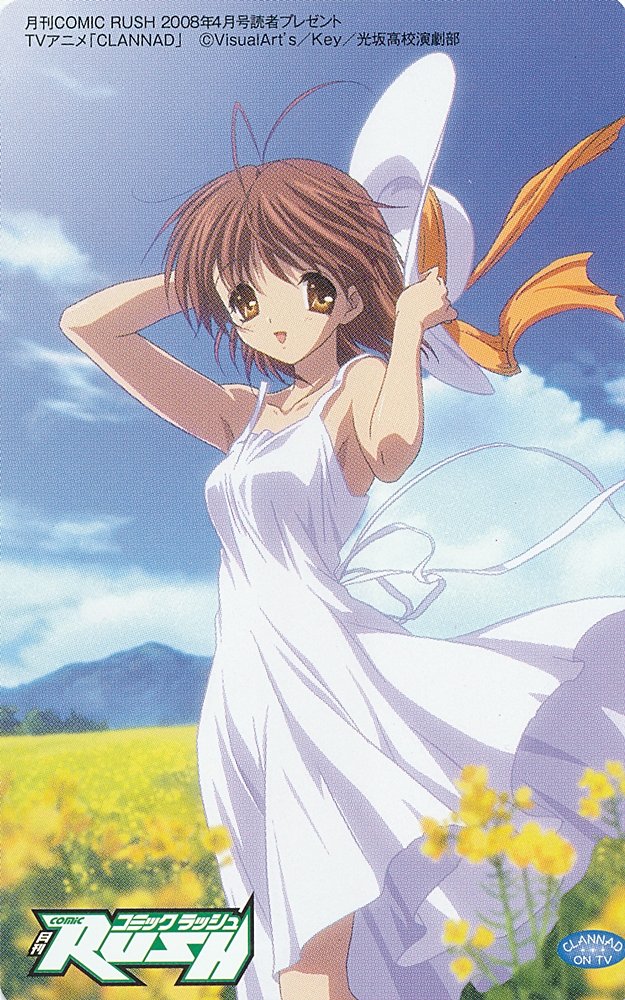 『CLANNAD』におけるメインヒロインの役割を果たす。根がまじめであり誰に対しても敬語をつかう。かなりお人好しであり人柄はよく、一言で表すのであればいい子。自分よりも他人の精神であり心優しい性格ではあるものの、少々大人しいため友達づくりが苦手。勉強は得意であり家事もこなせるが、病弱なことが手伝ってか運動は苦手。その病弱さはうまれついてのものであり、彼女はなんと三年の時間をほぼ欠席してしまっていたため、留年してしまっている。そのため、主人公である「岡崎朋也」とは同学年ではあるものの、歳が一歳上である。人見知りで気が弱く病弱な彼女ではあるものの、「だんご大家族」というキャラクターにおいての熱意はすさまじいもの。いつもは他者を優先してしまう彼女ではあるが、このキャラクターに関してだけは頑固である。