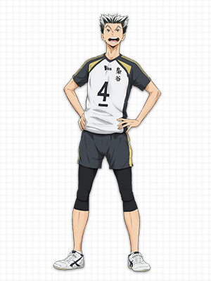 梟谷学園高校背番号4。バレー部主将で全国で5本の指に入るほどのスパイカー。常にテンションが高く、自然と敵味方関係なく士気を高めてしまう。熱くなると冷静さを欠いてしまい、更にスパイクが決まらなくなると「しょぼくれモード」に入ってしまう少し面倒な性格。合宿では「烏野」相手に強烈なインナースパイクを決めるなど、パワースパイカーだが巧みにコースを打ち分けることができる。チームの柱ともいえる「木兎」だが、実際にはチームメンバーがエースを引っ張っているチームと言われている。お兄さんなのに末っ子っぽい所が人気の一つ。