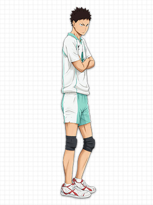 青葉城西高校背番号4。バレー部副主将であり、「影山」や「及川」と同じ北川第一中学出身。髪がツンツンしており鋭い目つきが特徴で不機嫌そうに見えることが多い。パワーとテクニックを持っており、まさにエースといえる。「及川」とは小学校の頃から一緒だったためか部活内部では唯一「及川」の扱いに慣れた人だ。「及川」と一緒にバレーをしてきたので「及川」と「岩泉」コンビの攻撃には安定感を感じる。チームメンバーからの信頼は厚く後輩から頼られることも多い。いざという時スパイクを決めてくれる為エースといえるだろう。