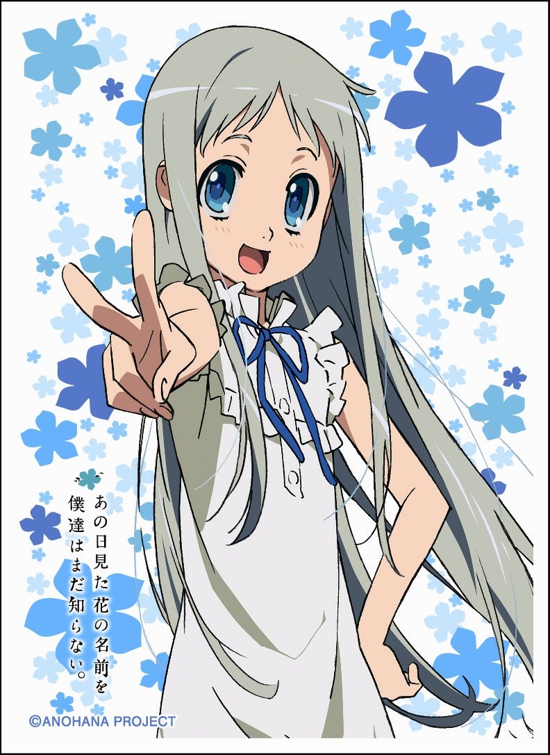 高校受験に失敗し、引きこもりとなった「宿海仁太」。ある夏、彼の幼い頃のあだ名「じんたん」と呼ばれ、目を開けると彼の前に少女がいた。しかし、彼女は彼以外には見えてはいない。その少女がこのアニメのメインヒロインで、「仁太」が幼い頃に事故で亡くなってしまった「本間芽衣子」である 。仲間からは「めんま」というあだ名で呼ばれていた。背丈は登場人物たちが高校生となっているため、同じだけ時間が経過したという部分を表現するために幼少期より大きくしている。幽霊設定としては当時のままというのが定説だがここは少し珍しい方法をとっている。しかし、精神面は成長しておらず、完全に同じ時間が流れているのではないという部分を表現しているタイプの幽霊である。