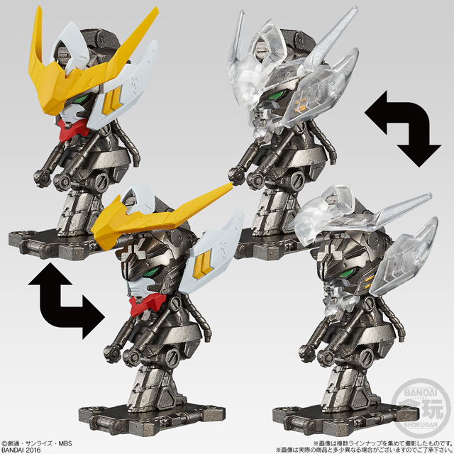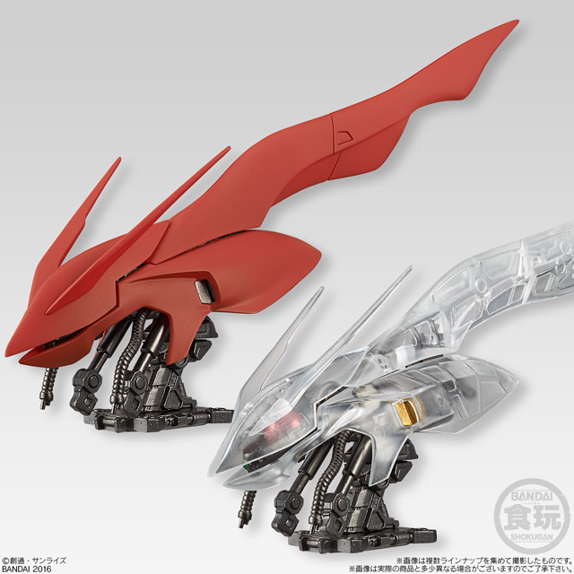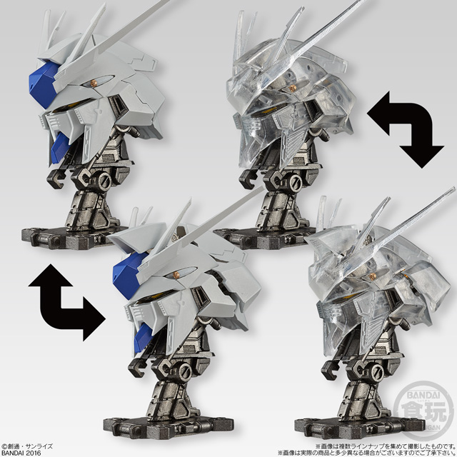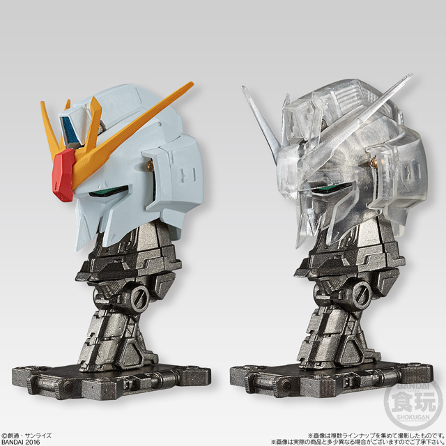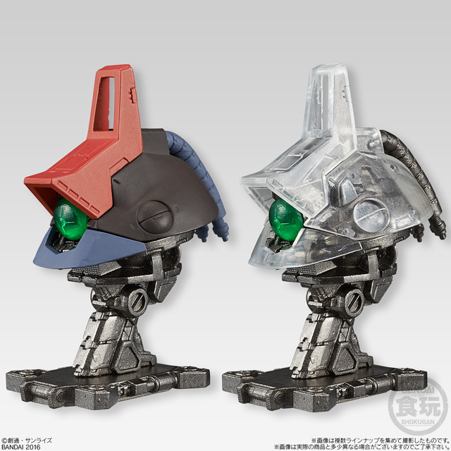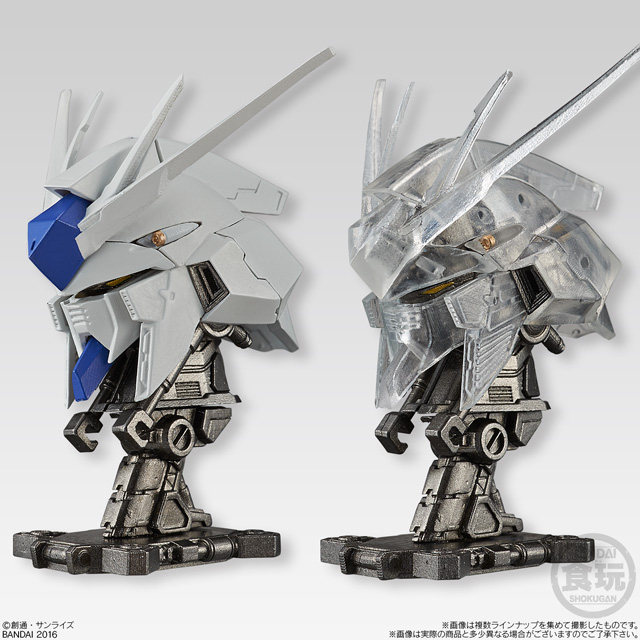 商品は外装装甲の造形形状がより鮮明に把握できる通常カラーver.と内部メカニック構造を楽しめるフレームワークver.(クリア成型)の2パターンを用意。 第1弾は「Zガンダム」「リック・ディアス」「Hi-νガンダム」「ナイチンゲール」「ガンダムバルバトス」の全5種のラインナップとなっている。それぞれの特徴として、「Hi-νガンダム」「Zガンダム」「ガンダムバルバトス」は外装パーツ位置の差し替えによる装甲展開状態の再現、「リック・ディアス」はパーツ可動+一部差し替えによるバルカン・ファランクス発射状態の再現、「ナイチンゲール」はパーツ可動によるコクピットハッチオープン状態の再現と、従来の頭部フィギュアには無い魅力も満載! この「機動戦士ガンダム MACHINE HEAD」(450円・税抜)は、全国のお菓子売り場やバンダイ公式ショッピングサイト「プレミアムバンダイ」にて2016年8月30日(火)に発売開始。