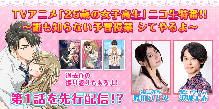 「TVアニメ『25歳の女子高生』ニコ生特番!! ~誰も知らない予習授業 シてやるよ~」 |