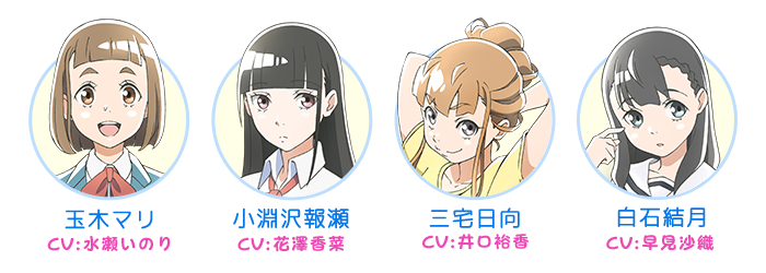 エンディングテーマ「ここから、ここから」を歌うのは、「玉木マリ(CV:水瀬いのり)」、「小淵沢報瀬(CV:花澤香菜)」、「三宅日向(CV:井口裕香)」、「白石結月(CV:早見沙織)」の4人に決定!!